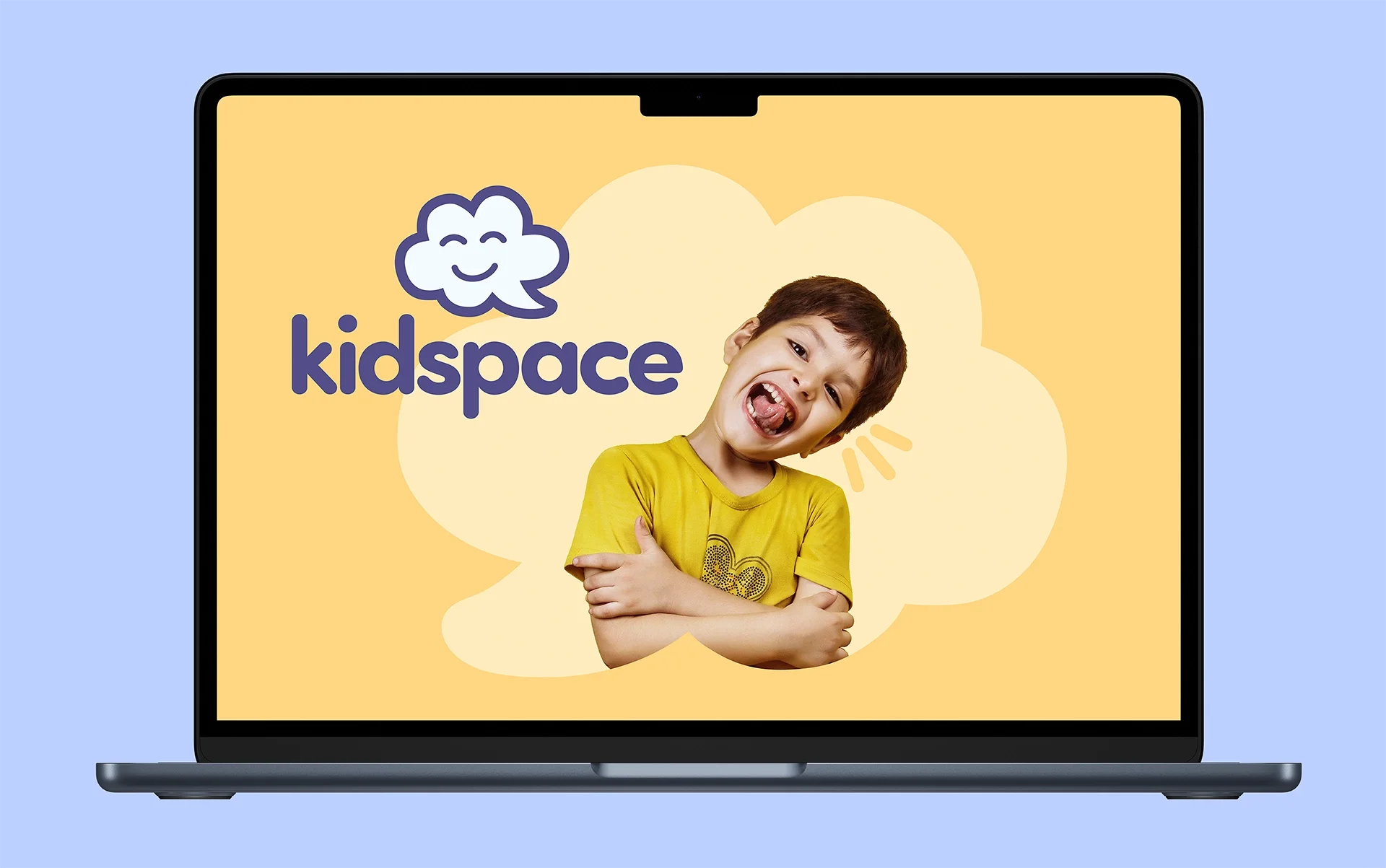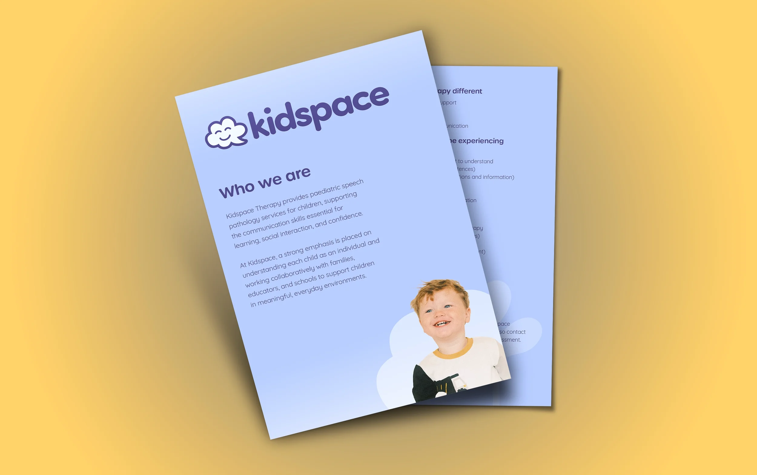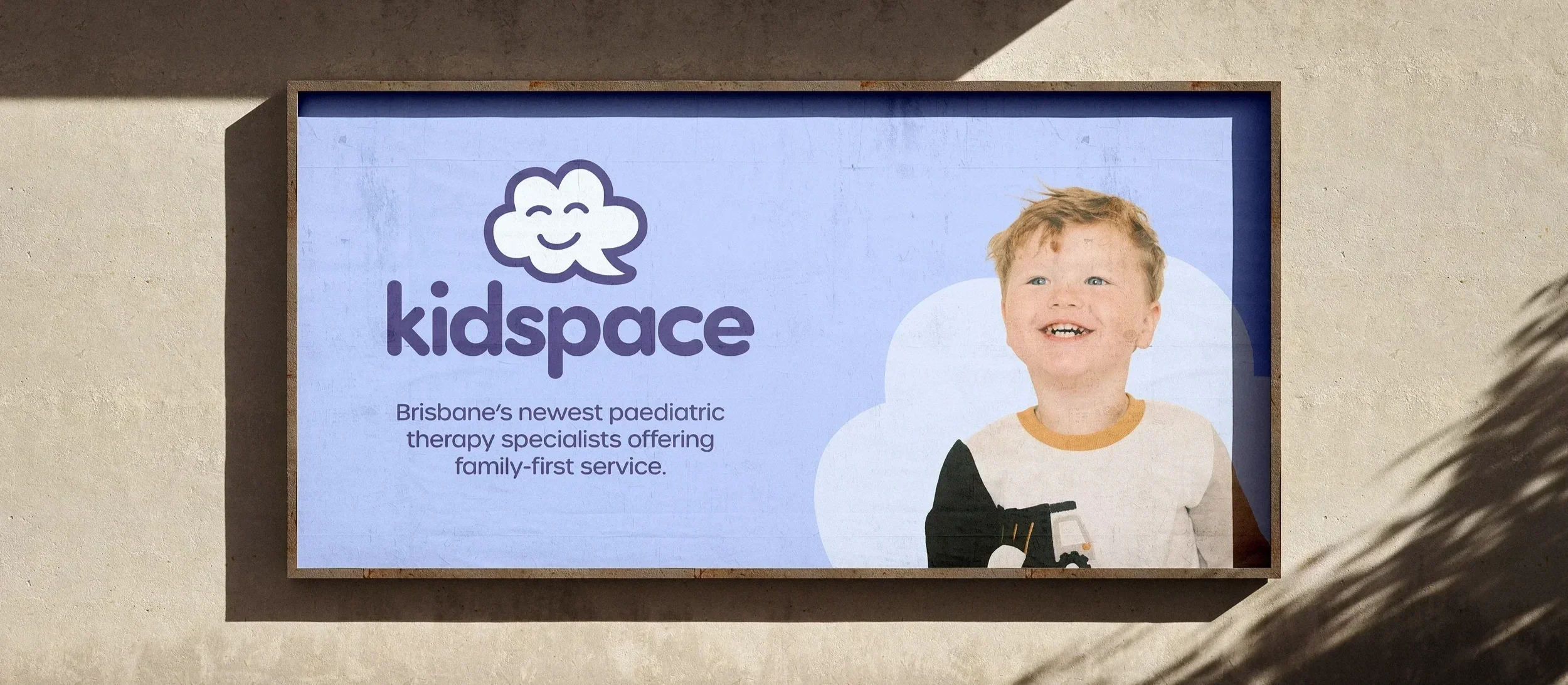 Kidspace needed to feel like a place kids actually want to go. The identity centres around a cloud-shaped speech bubble character: part thought bubble, part speech bubble, representing imagination, communication, and the joy of finding your voice.