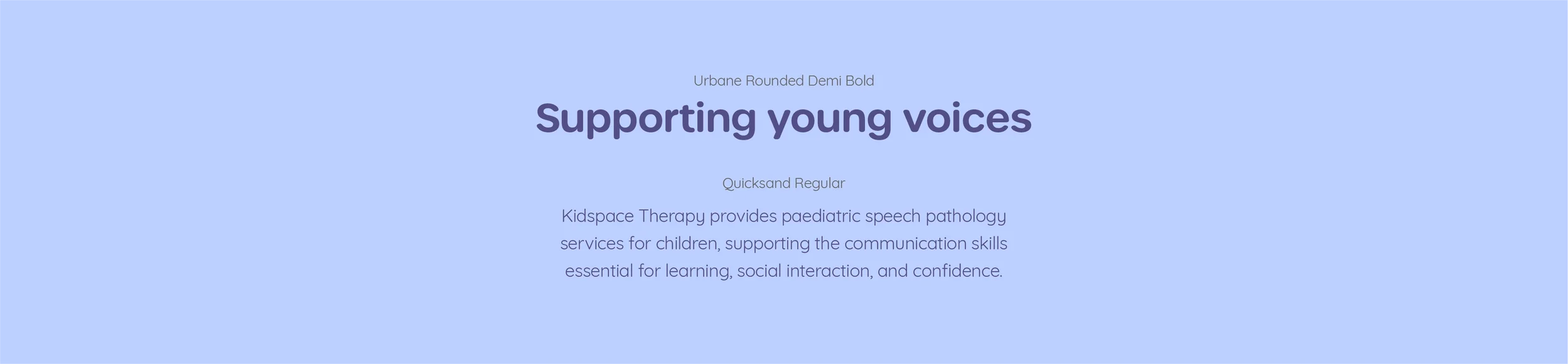 Urbane Rounded Demi Bold leads the hierarchy with friendly confidence, while Quicksand Regular keeps body text light and readable. Both typefaces share a rounded, open quality that reinforces the warmth and approachability of the Kidspace identity.