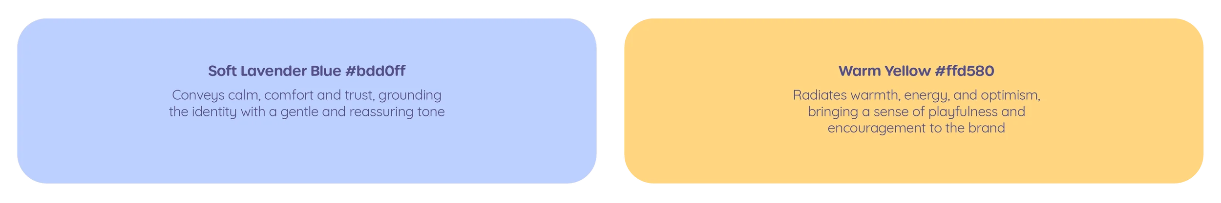 Both colours are designed to work interchangeably as a background or in harmony together, giving the brand flexibility across touchpoints while maintaining a consistent and cohesive feel.