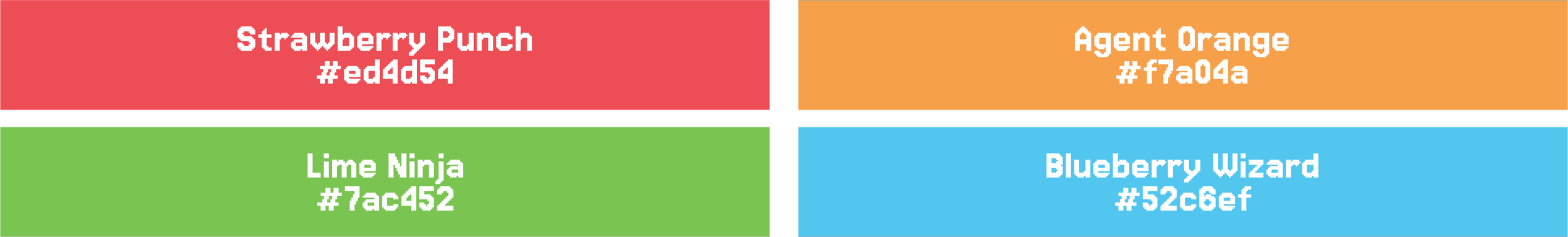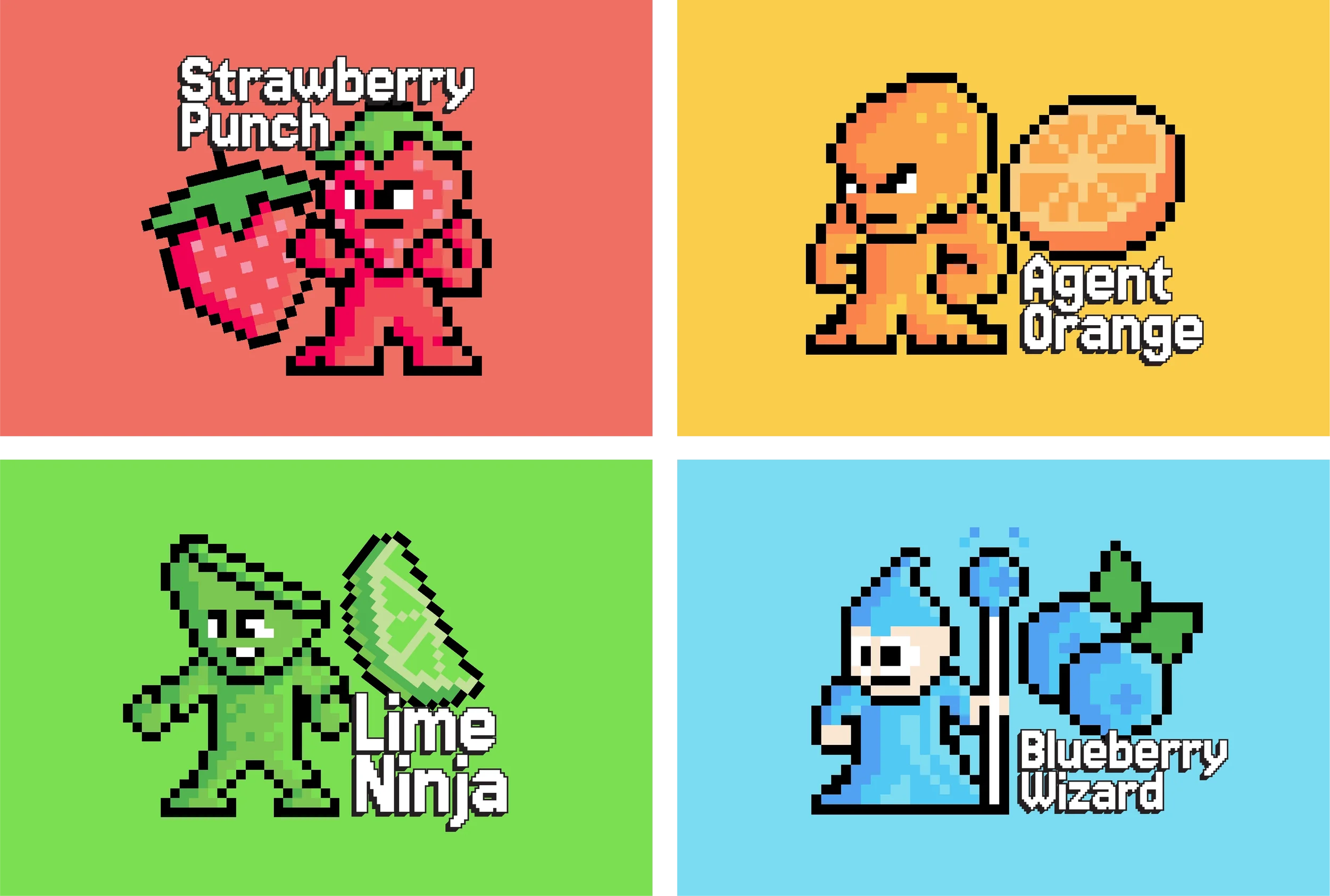 Strawberry Punch, Agent Orange, Lime Ninja and Blueberry Wizard.