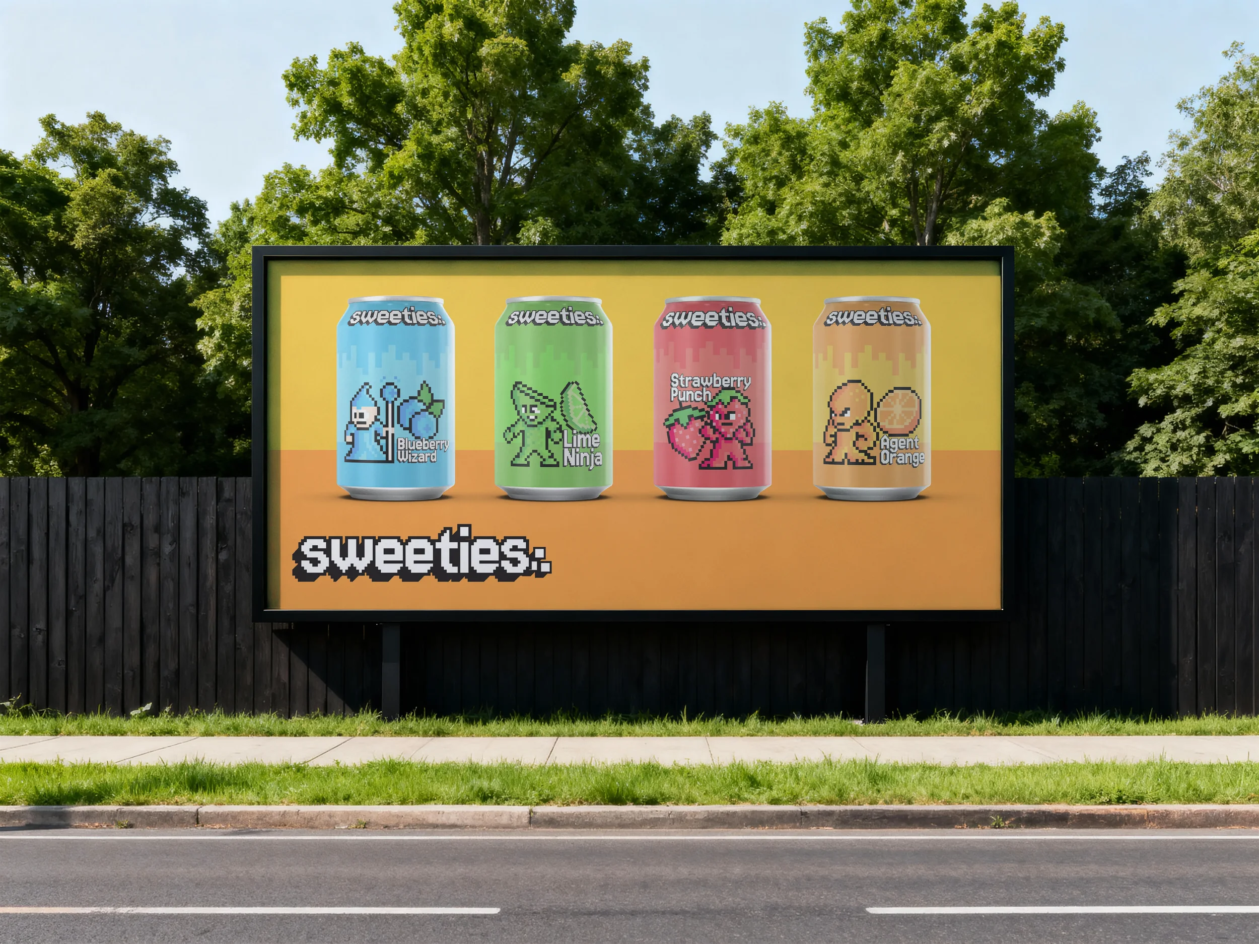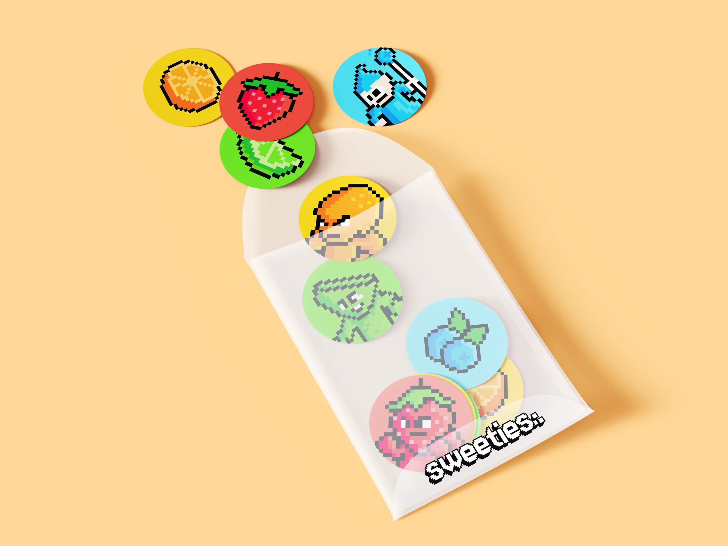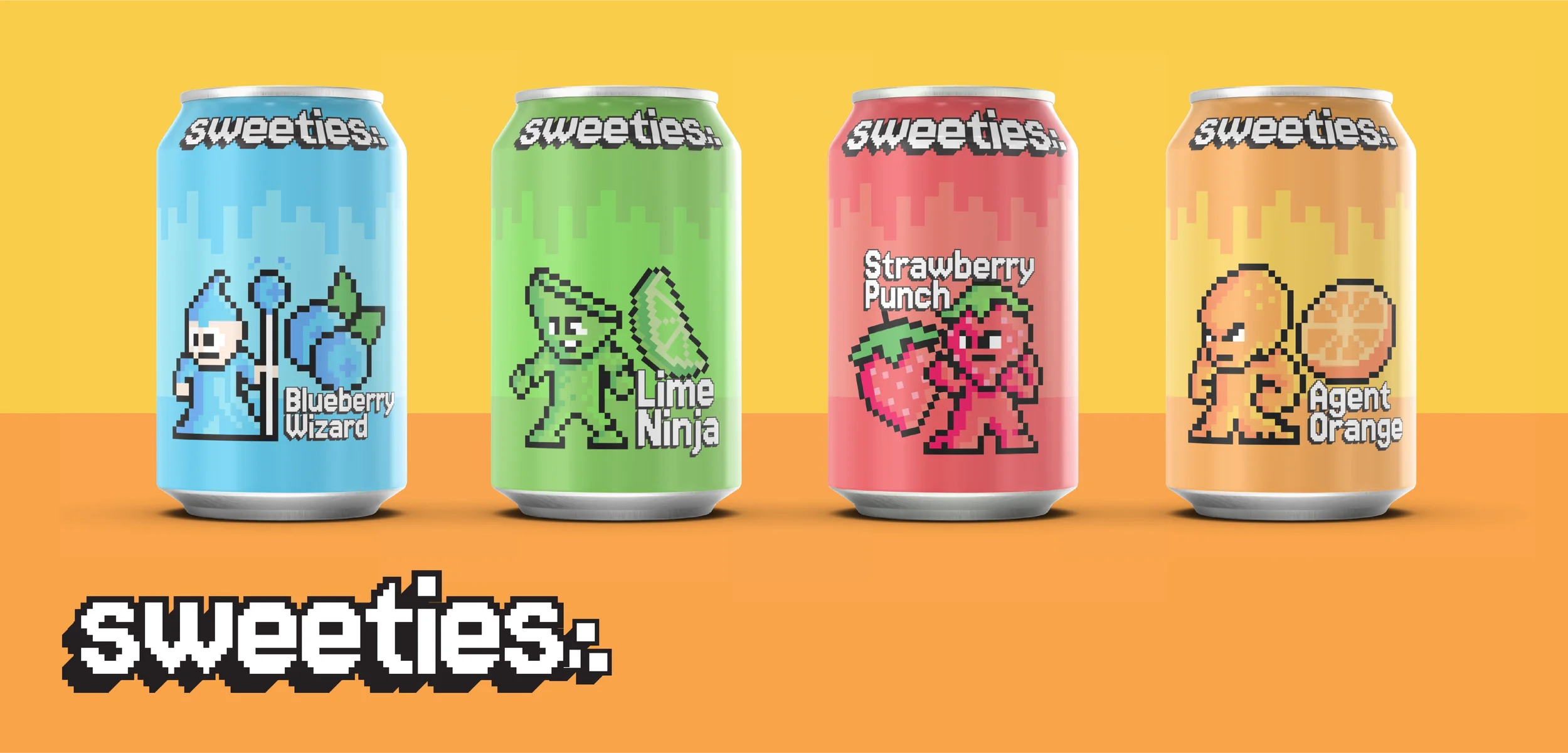 Each Sweeties flavour has its own pixel art character, a collectible personality that gives kids a reason to pick a favourite and keep coming back.